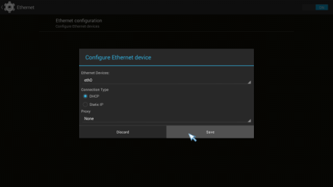 In the top right hand corner of the screen, click "ON" to turn on Ethernet (if it is not already so).