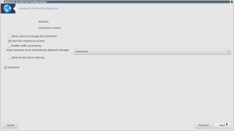 Make sure "Start the connection at boot" is checked. Press the "Next" button.